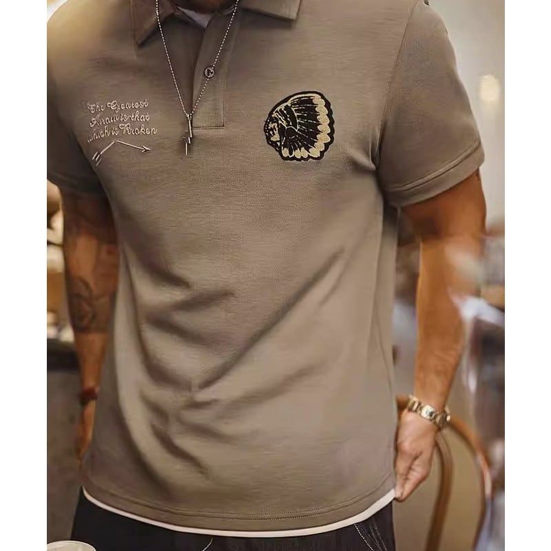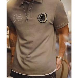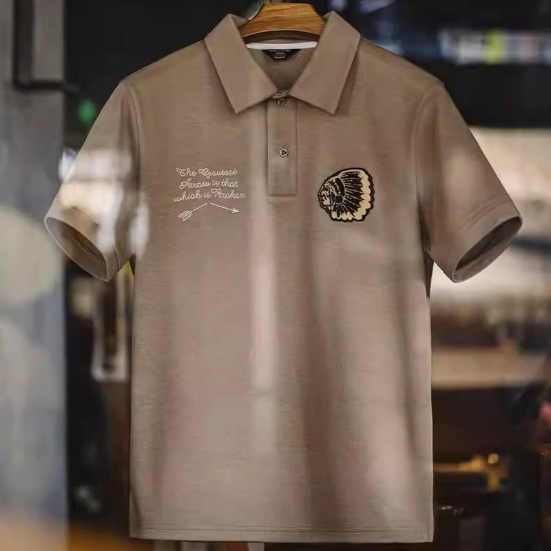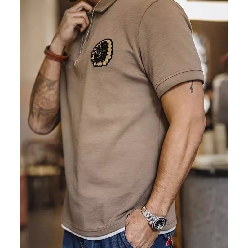 オープンカラーが特徴的な半袖ニットポロシャツ。カジュアルながらも上品な印象を与え、普段使いから、少し上品な装いにも合わせやすい一枚。胸元の刺繍がさりげないアクセント。