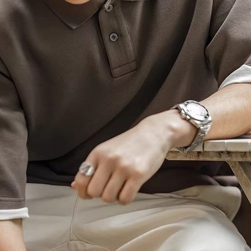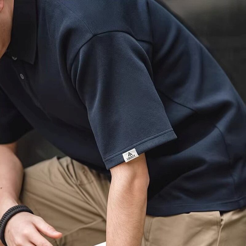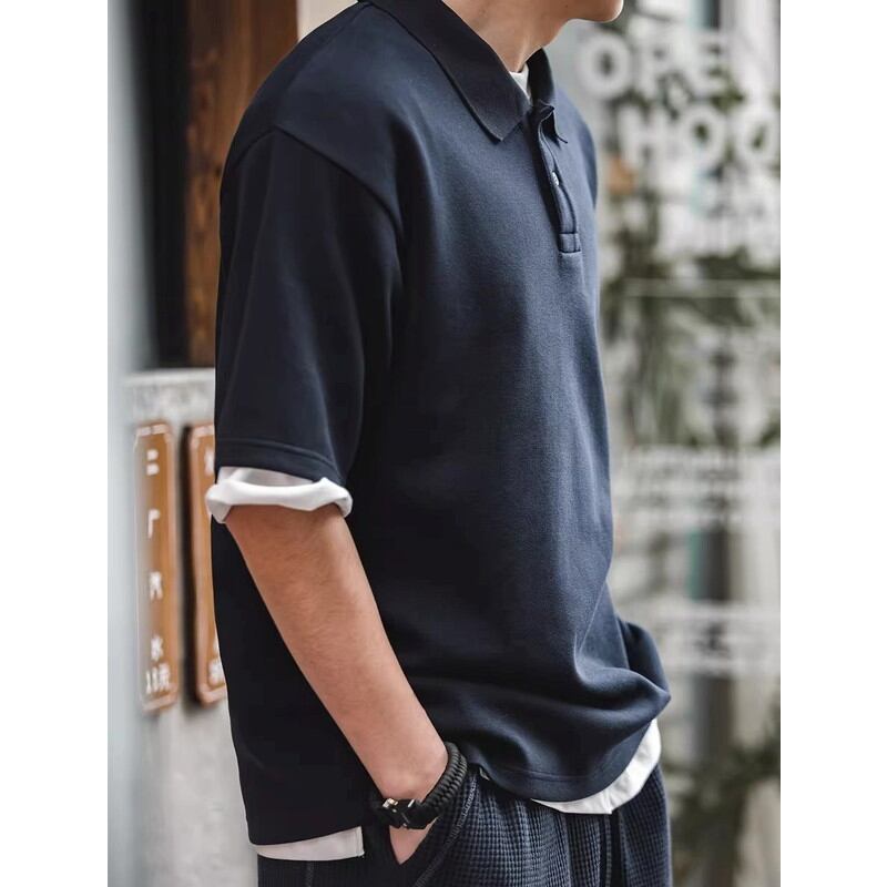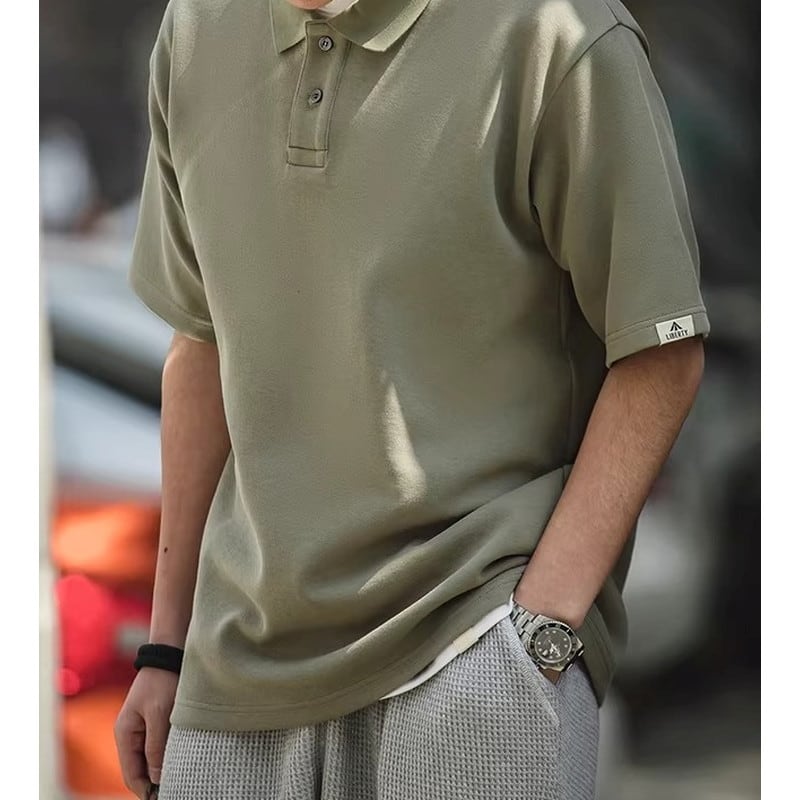 ゆったりとしたシルエットが特徴の半袖ニットポロシャツ。シンプルなデザインで着回しやすく、カジュアルな普段使いに最適です。インナーにTシャツを重ね着して、襟元から覗かせるレイヤードスタイルもおすすめです。