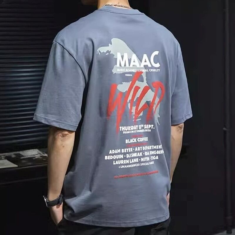 Short Sleeve Big Silhouette Printed T-Shirt ◇4color H1072