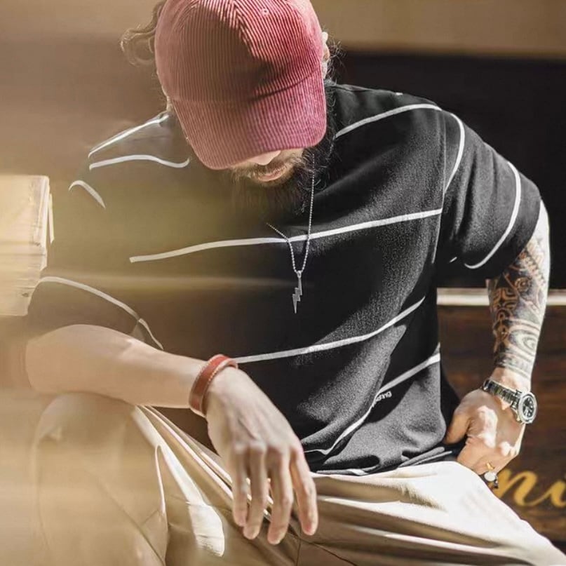 Striped Half Sleeve Loose T-Shirt ◇H1105