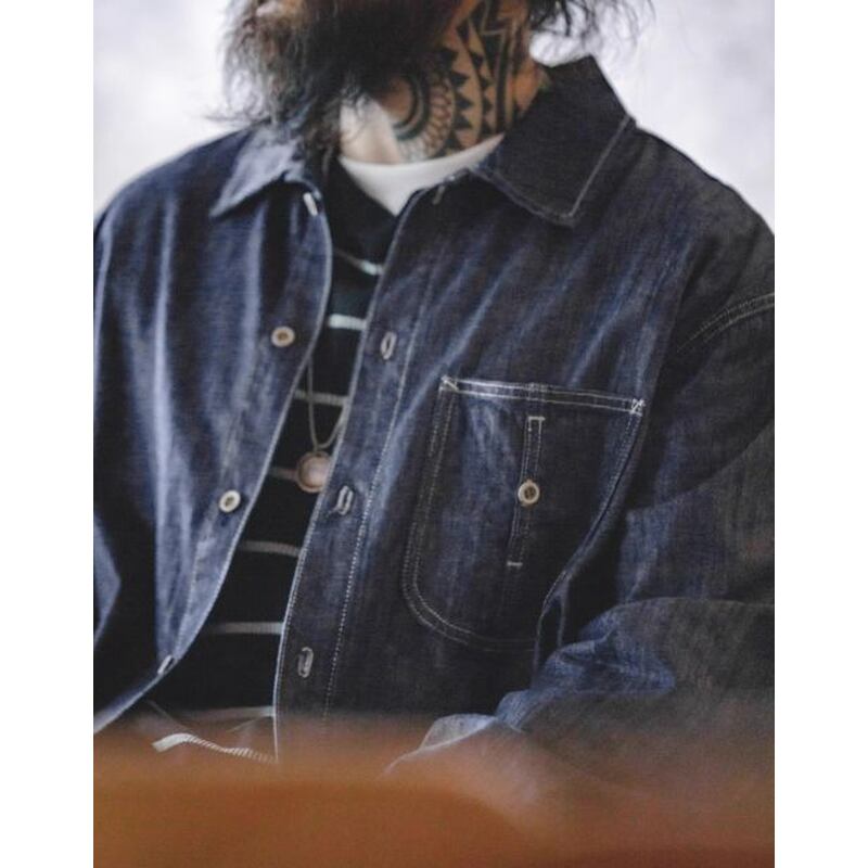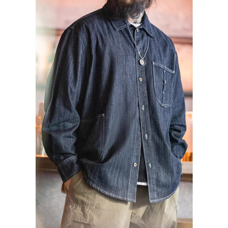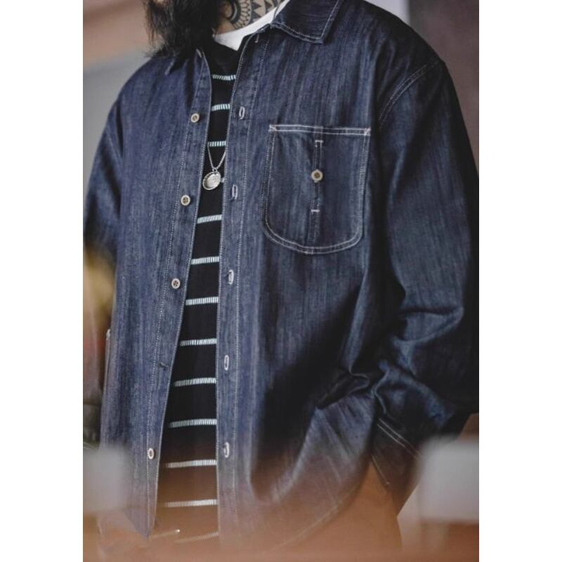 ウォッシュドデニムのワークシャツは、どんなスタイルにも合わせやすい万能アイテムです。アウトドア、作業着などに最適です。胸元のポケットがアクセントになり、カジュアルなスタイルを演出します。