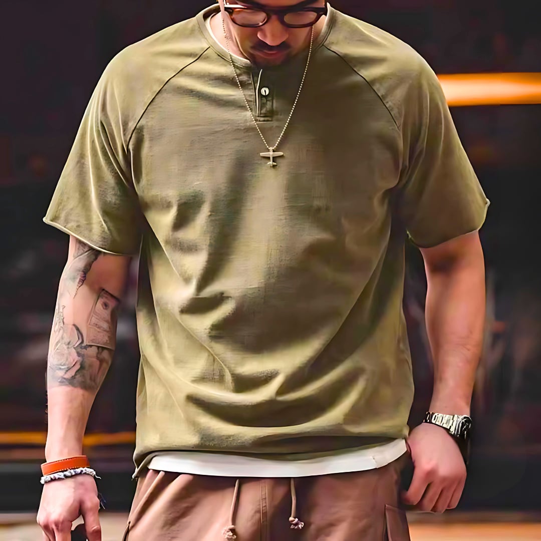 ボタンダウンのヘンリーネック半袖Tシャツは、着心地の良さで快適な毎日を演出します。シンプルながらも洗練されたデザインは、様々なボトムスと合わせやすく、カジュアルから少しきれいめなスタイルまで幅広く対応可能です。一枚持っておくと重宝すること間違いなしです。