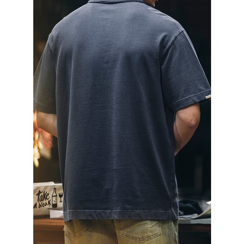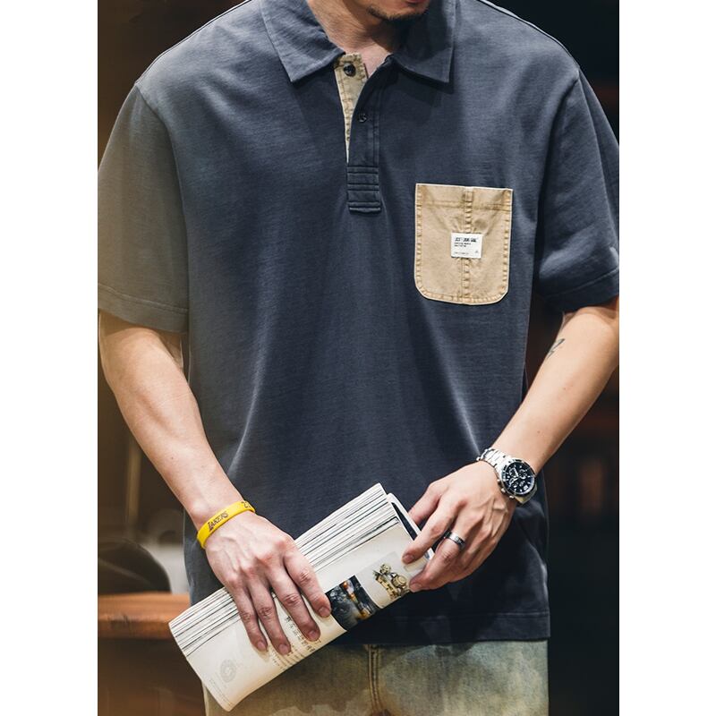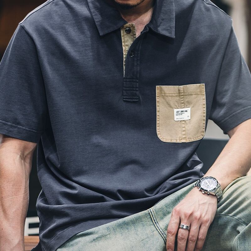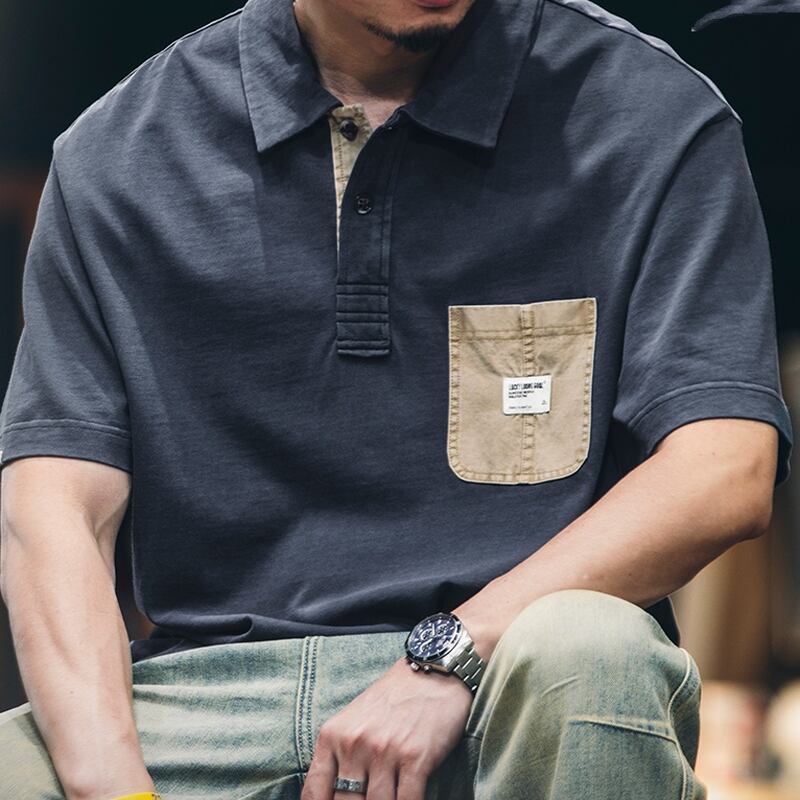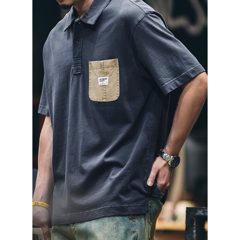 特徴的なポケットデザインが目を引く半袖ポロシャツです。ゆったりとしたシルエットでリラックスした着心地を実現。カジュアルなスタイルから、少しきれいめなスタイルまで幅広く着こなせます。普段使いはもちろん、休日の外出にもぴったりです。