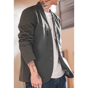 スタンドカラーのボタン留めテーラードジャケットは、様々なシーンで活躍する万能アイテムです。すっきりとしたシルエットで、カジュアルなスタイルからフォーマルなスタイルまで幅広く合わせられます。一枚持っていると着こなしの幅が広がり、コーディネートのアクセントにもなります。