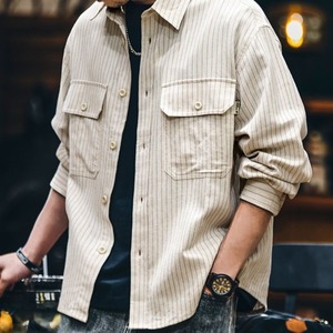 Stripe Pattern Button-Down Long Shirt ◇2color H0234