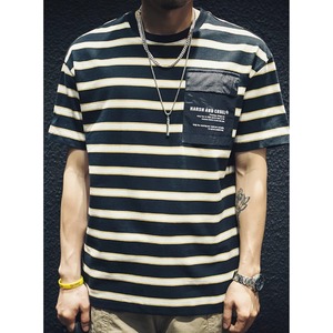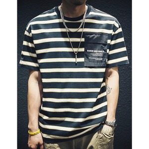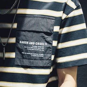 Striped Short Sleeve T-Shirt with Patch Pocket ◇H0226