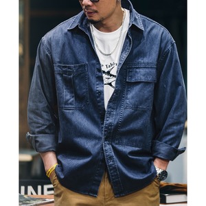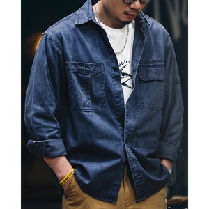 ワークスタイルにもカジュアルスタイルにも合う、長袖デニムワークシャツ。大きめのフラップポケットが特徴的で、実用性も抜群です。様々なボトムスと合わせやすく、着回し力も高い一着です。