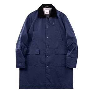 ロング丈のラグランスリーブコートは、隠れた比翼仕立てが上品な印象を与えます。落ち着いた色合いで、様々なコーディネートに合わせやすく、秋冬の着こなしに重宝するアイテムです。