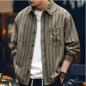 Vertical Stripe Long Sleeve Button-Down Shirt ◇2color H0246