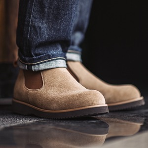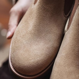 Suede Leather Side Gore Boots Flat Sole ◇H0182